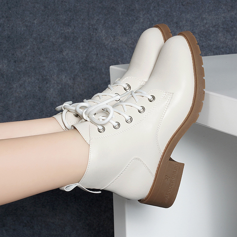 • 商品名称:2025新款真皮平底短靴女秋冬新款马丁靴系带加绒中跟粗跟女靴子