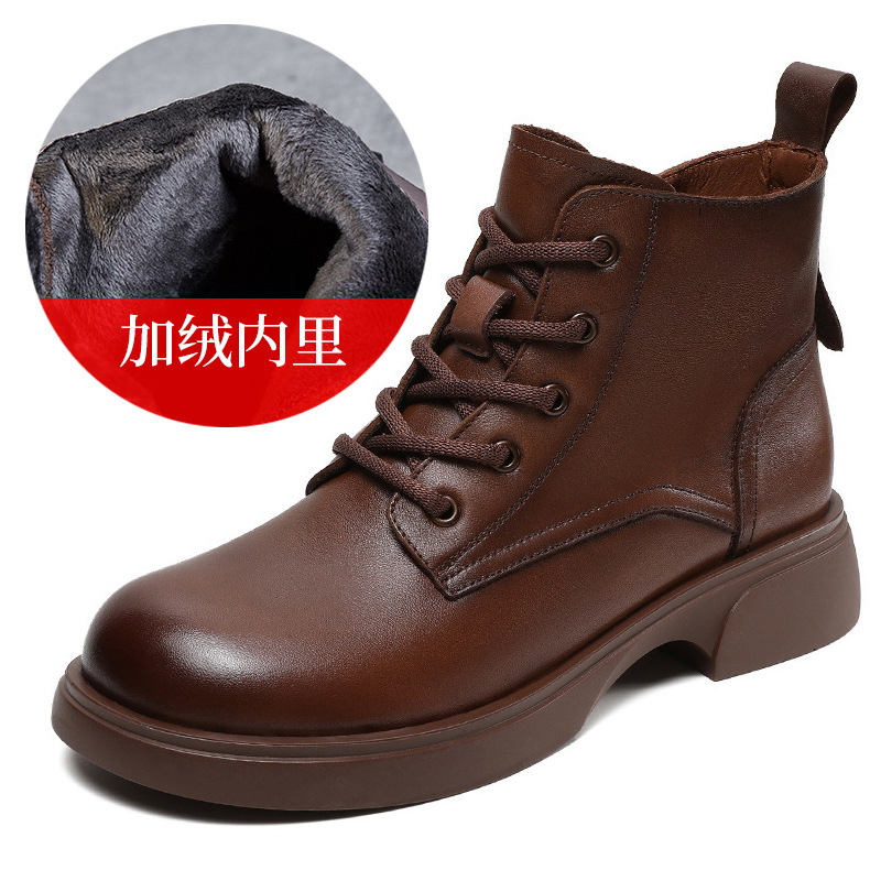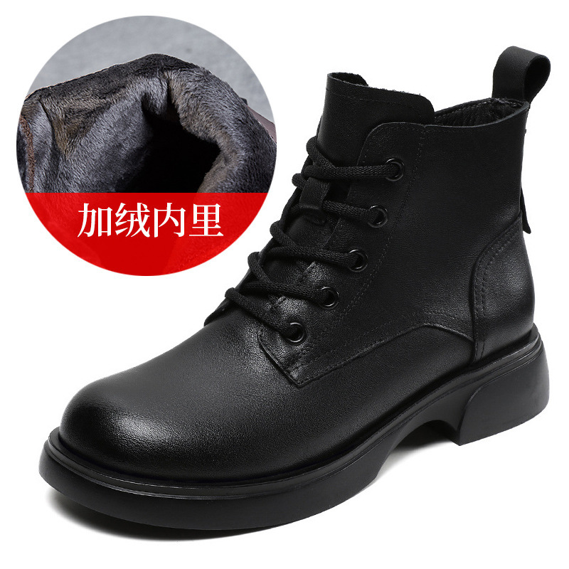 • 商品名称:真皮马丁靴女平底2025秋冬季英伦风复古圆头粗跟高帮休闲软皮短靴
