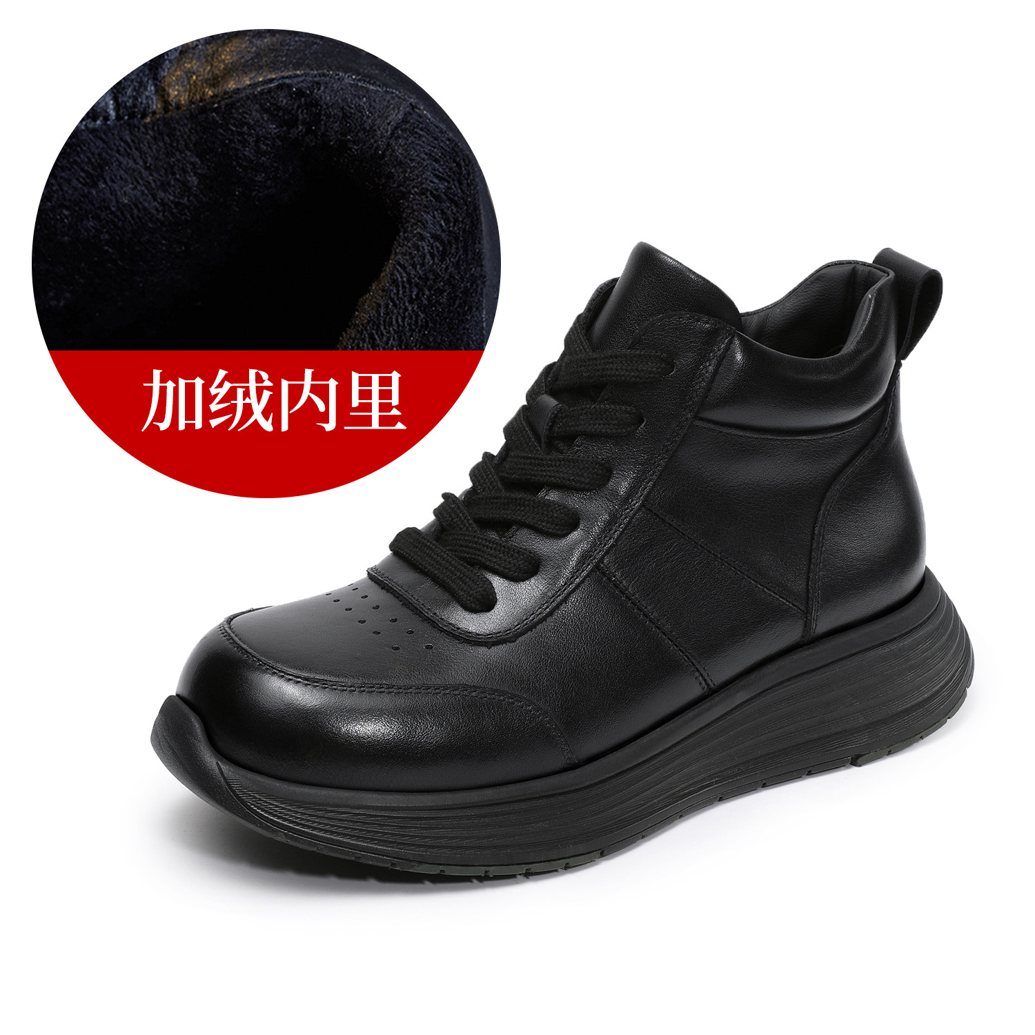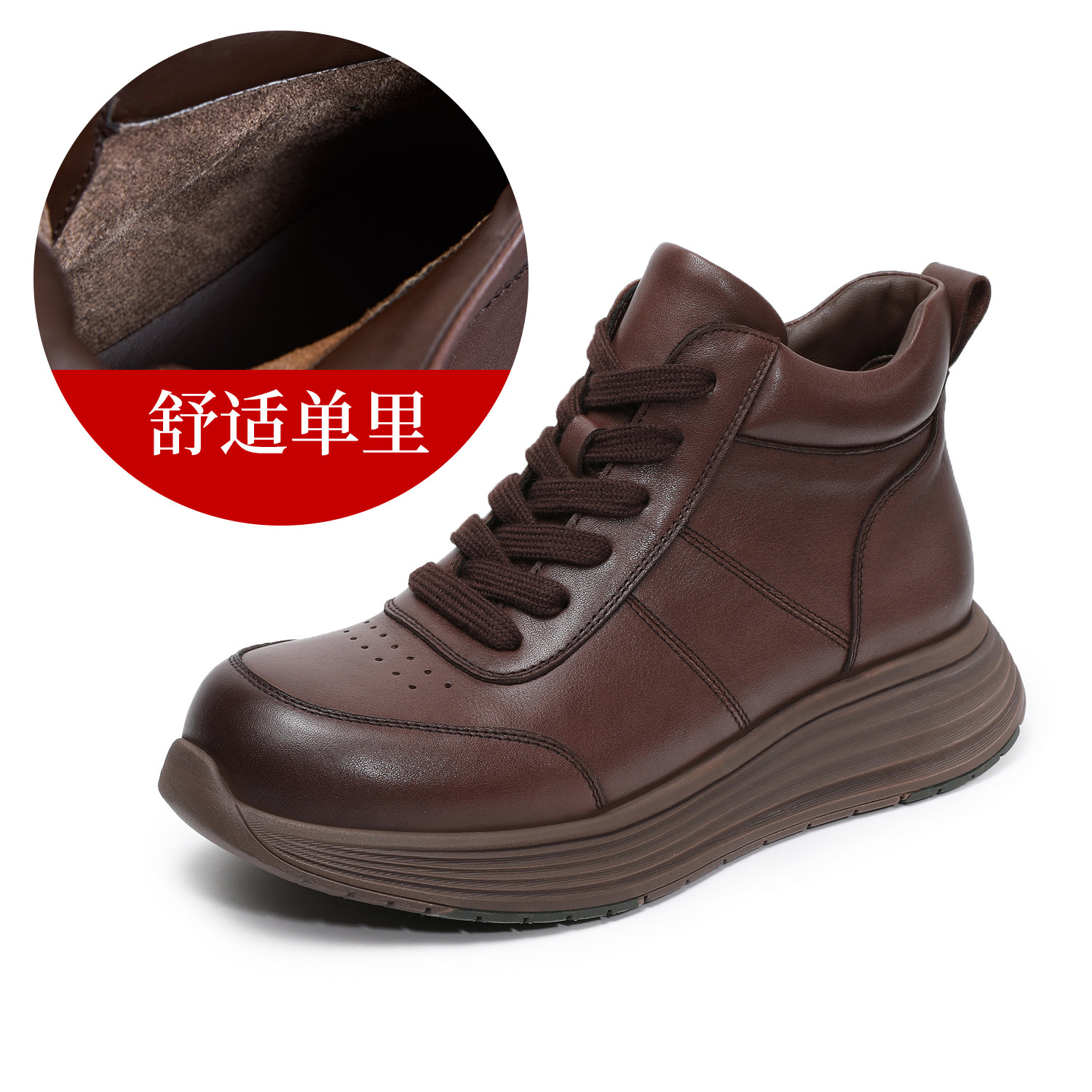 • 商品名称:2025秋冬新款系带真皮短靴厚底舒适高帮运动休闲鞋软底坡跟皮鞋子