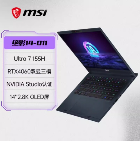 • 商品名称:微星/MSI 绝影14 Studio 13代 i9 RTX4060 显卡2.5K240Hz釉月屏轻薄游戏设计笔记本