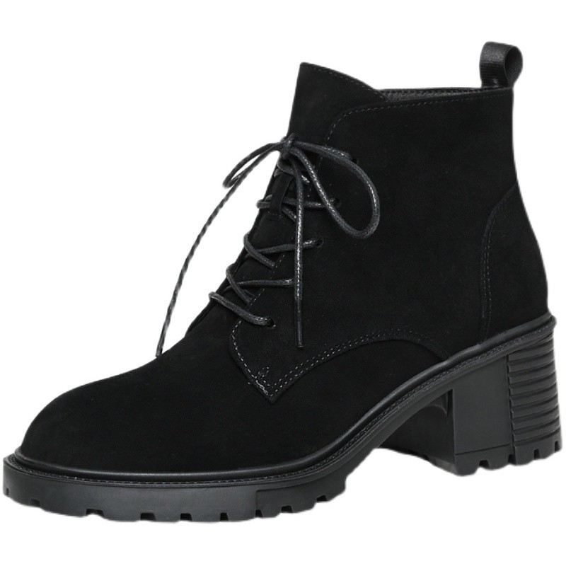 • 商品名称:真皮短靴女2025冬季新款马丁靴系带磨砂加绒高跟粗跟女靴子