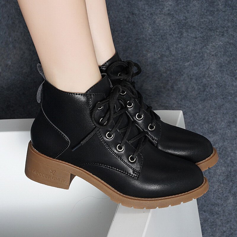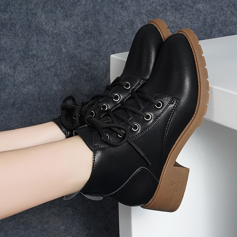 • 商品名称:2025新款真皮平底短靴女秋冬新款马丁靴系带加绒中跟粗跟女靴子