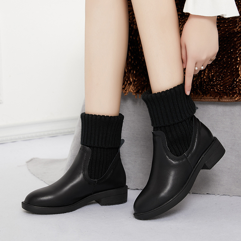 • 商品名称:爆款2025秋冬马丁靴真皮厚底毛线短靴针织中筒靴加绒粗跟女袜靴子靴